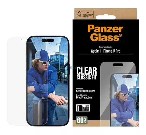 PANZERGLASS CLASSIC FIT EASYALIGNER ecran protector de sticlă (strat oleofobic + cadru de sprijin) pentru Apple iPhone 17 Pro