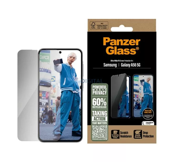 PANZERGLASS PRIVACY ULTRA-WIDE FIT ecran protector de sticlă (3D, vedere de protecție + cadru) BLACK Samsung Galaxy A56 5G (SM-A566)
