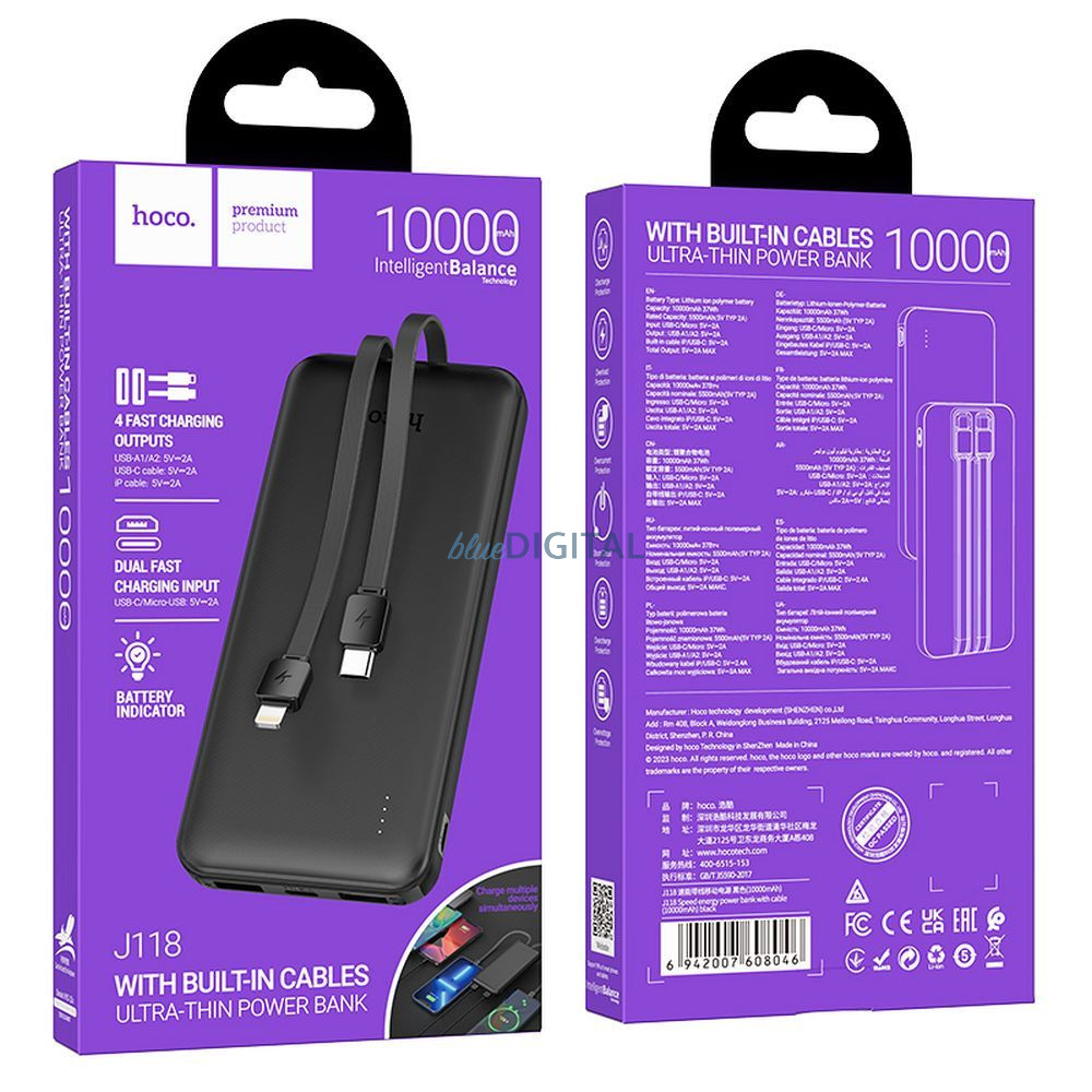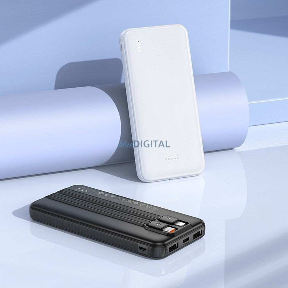 Hoco Powerbank cu o capacitate de 10.000 mAh garantează încărcarea rapidă oriunde și oricând. Datorită celor 2 porturi USB-A și celor 2 cabluri încorporate cu USB-C și Lightning, puteți încărca patru dispozitive în același timp. Afișajul digital LED informează despre starea bateriei power bankului.