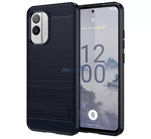 HUSĂ! - Protectie de telefon din silicon MOFI (rezistenta la impact mediu, colt cu perna de aer, periat, model carbon) ALBASTRU INCHIS Nokia X30