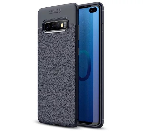 HUSĂ! - Protectie din silicon pentru telefon (rezistenta la impact mediu, efect piele, model de cusaturi) ALBASTRU INCHIS Samsung Galaxy S10 Plus (SM-G975)