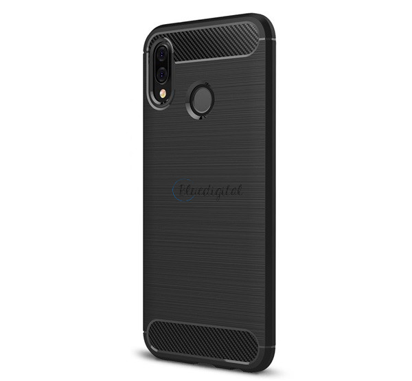 HUSĂ! - Protectie din silicon pentru telefon (rezistenta medie la impact, colt cu perna de aer, periat, model carbon) NEGRU Huawei P20 Lite