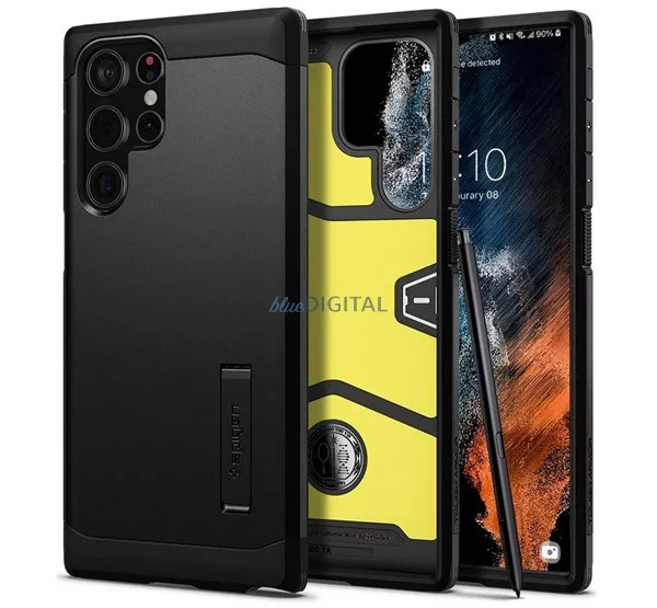 HUSĂ! - Protectie telefon SPIGEN TOUGH ARMOR din plastic (cadru din silicon, rezistenta medie la impact, suport) NEGRU Samsung Galaxy S22 Ultra