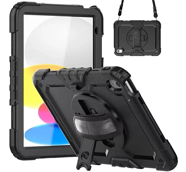 Protector de telefon din plastic Defender (rezistenta la impact, suport, 360° + curea de mana, curea de umar) NEGRU Apple IPAD 10.9 (2022)