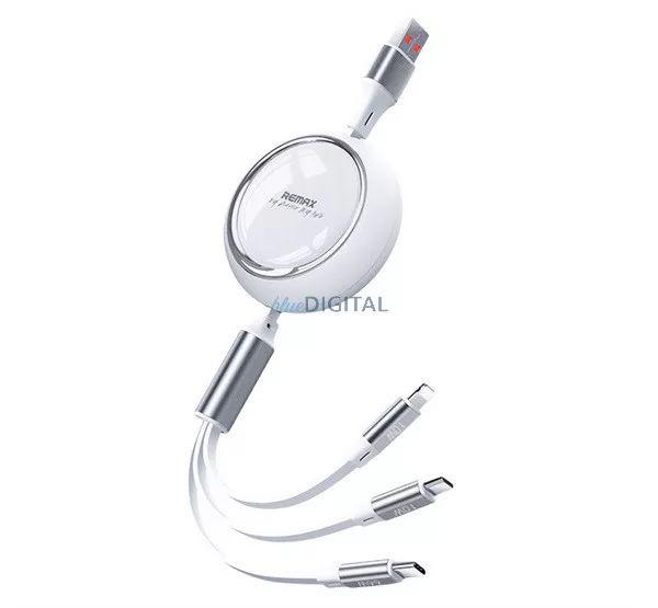 REMAX LINON cablu de date 3in1 (USB - fulger/Type-C/microUSB, 2.4A, 66W, încărcător rapid, 100cm) ALB