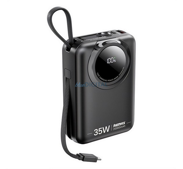 REMAX SCUBA încărcător de urgență Type-C + priză fulger (20000mAh, 35W, încărcător rapid PD, afișaj LED + cablu fix Type-C) NEGRU