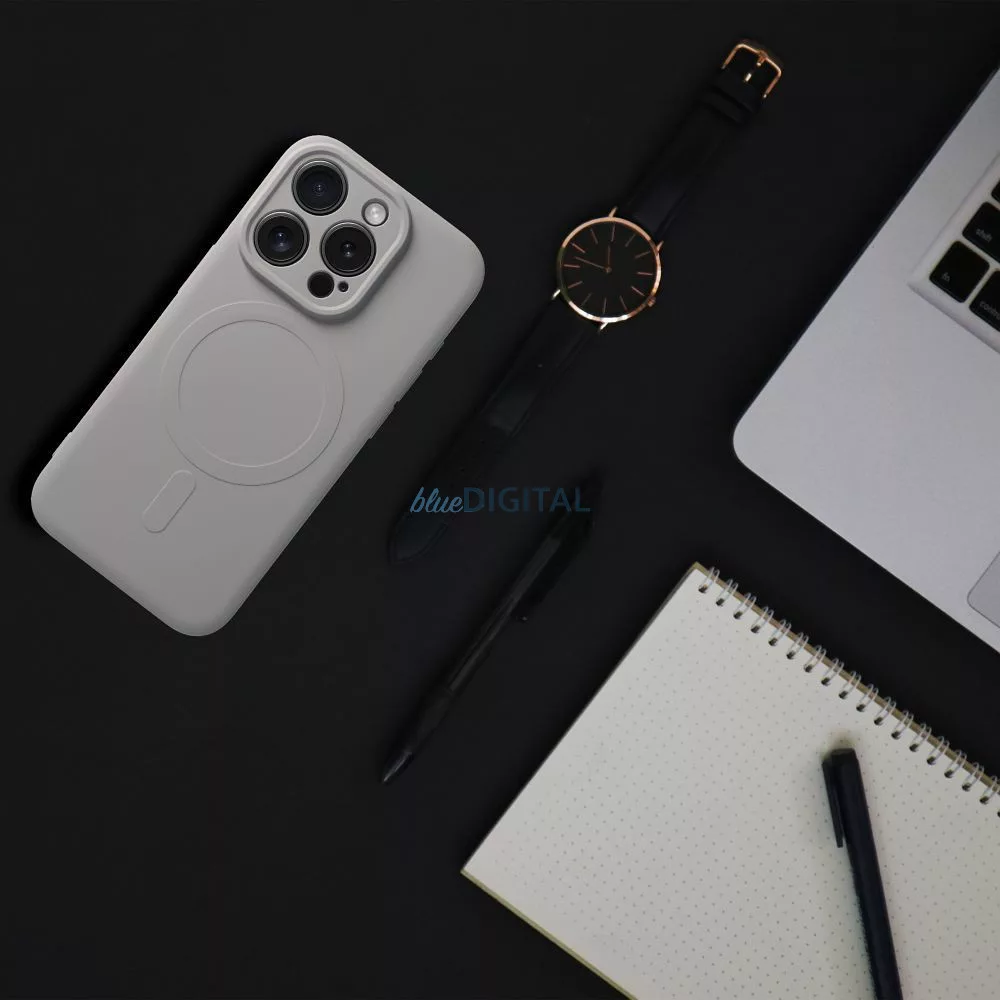 HUSĂ! - SILICONE MAG COVER Carcasă compatibilă MagSafe cu decupaj complet pentru cameră iPhone 16 Pro - gri titan