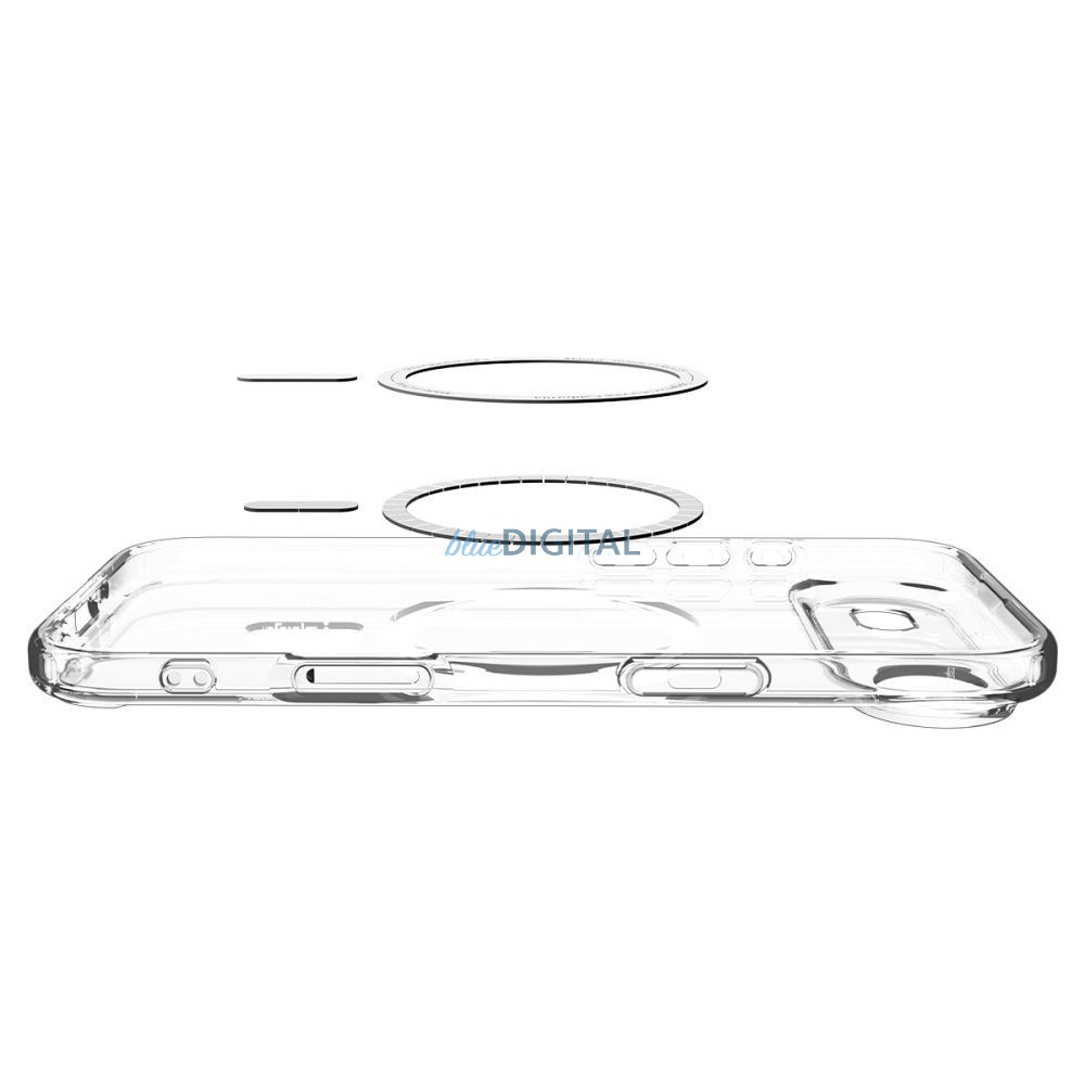 Capac spate Ultrashield - SPIGEN Ultra Hybrid. Protecție perfectă împotriva deteriorărilor și zgârieturilor. Are margini întărite care protejează telefonul în timpul unei căzături. Produsul este compatibil cu tehnologia MagSafe pentru încărcare inductivă.