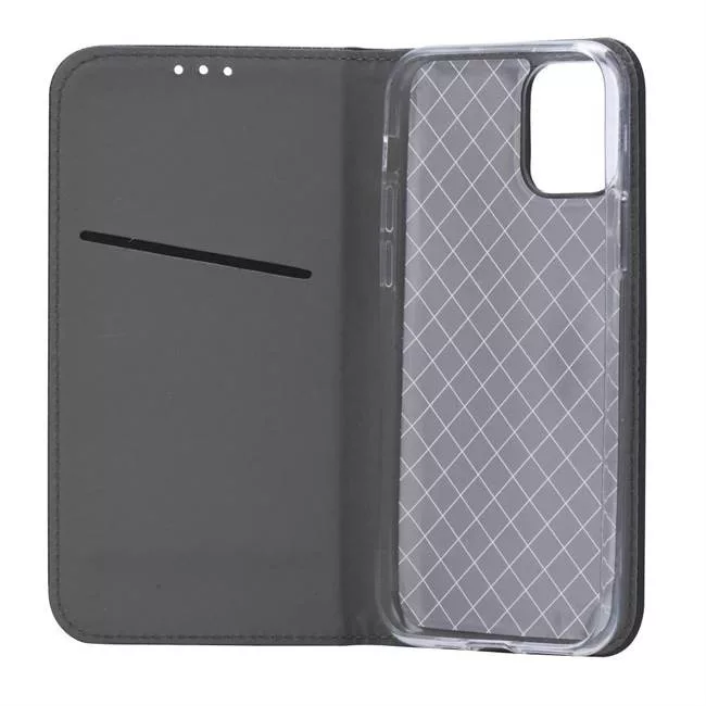 Carcasa originală cu finisaj metalic. Decorată cu un material lucios la exterior și un material moale la mijloc pentru a proteja ecranul telefonului de zgârieturi. Are buzunare pentru documente și o închidere magnetică. Disponibilă în mai multe culori.