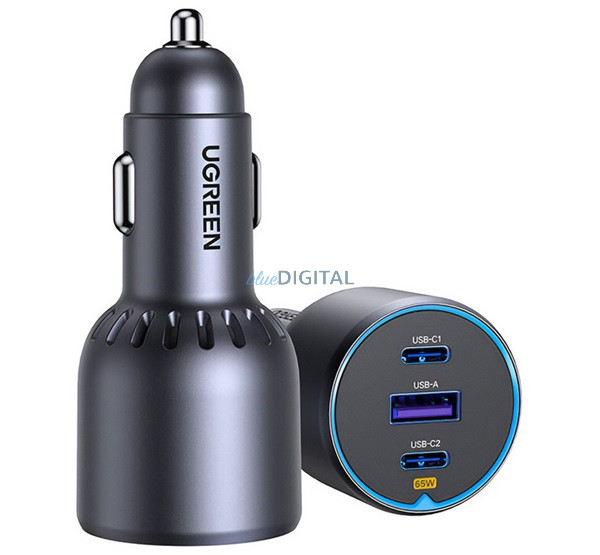 UGREEN EC703 Încărcător auto USB+2 Priză tip C (75W, încărcător rapid PD 3.0) NEGRU