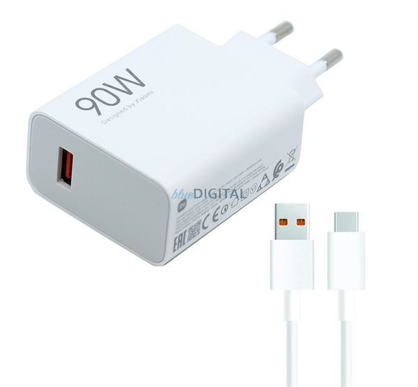 XIAOMI HYPERCHARGE COMBO încărcător de rețea priză USB (90W, încărcător rapid + cablu Type-C) ALB