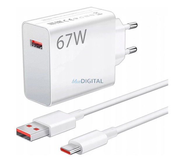 XIAOMI Încărcător AC priză USB (67W, încărcător rapid PD + cablu Type-C) ALB