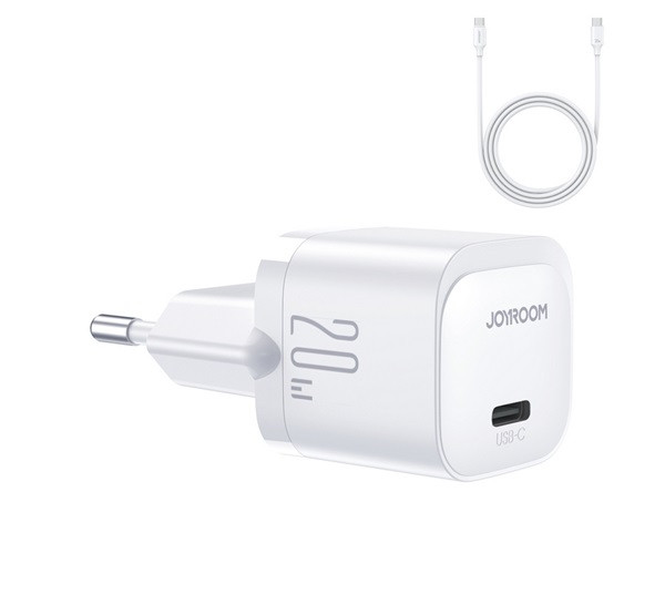 Încărcător JOYROOM MINI priză tip C (20W, încărcător rapid PD + cablu tip C) ALB