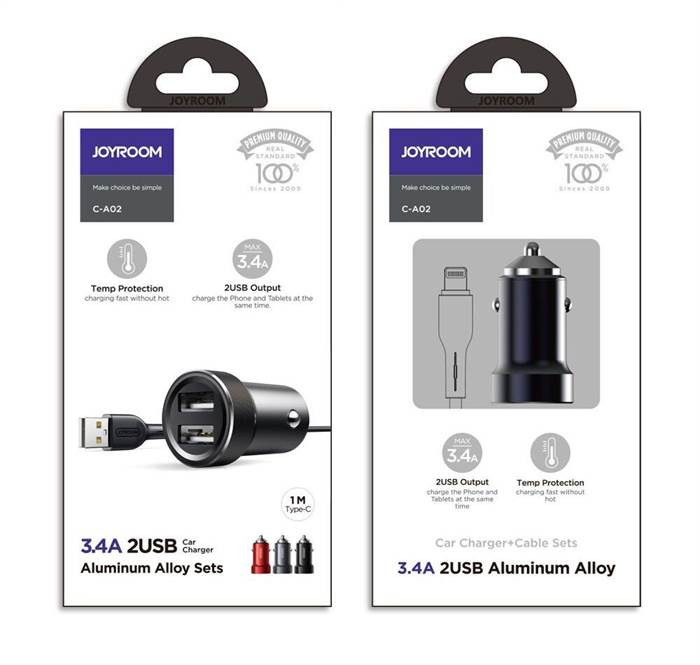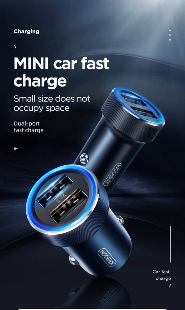 Încărcător de mașină Joyroom C-A02 Wise 3.4A 2xUSB - negru