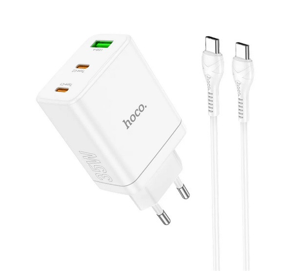 Încărcător de rețea HOCO N33 USB+2 priză tip C (35W, încărcător rapid PD 3.0 + cablu tip C) ALB