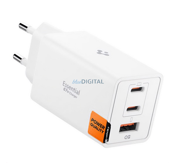 Încărcător de rețea SPIGEN ESSENTIAL USB+2 Priză tip C (67W, GaN, încărcător rapid PD 3.0) ALB